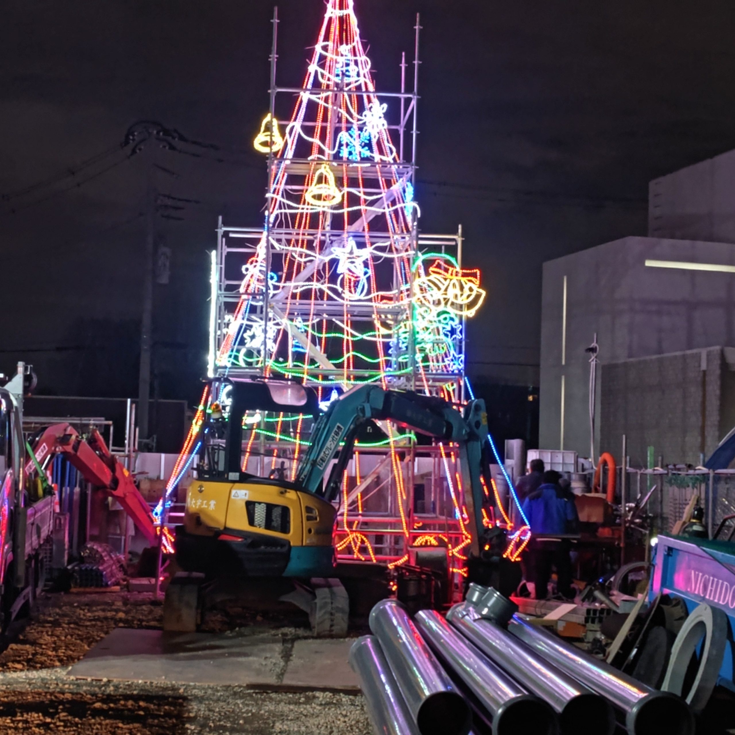 大宇ごと。STAFF BLOG 社内イベント 2025/12/25 今年もクリスマスツリーを作りました。 今年も毎年府中市内で恒例となっているツリーを作りました。 今までと大きさは変わりませんが、2025年はバージョンアップして7色に変化するレインボーになりました! 皆様一度ご覧ください。