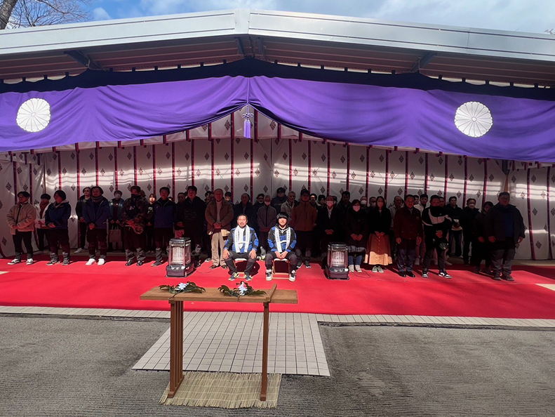 新年の行事です、社員一同で府中市の大國魂神社の境内で安全祈願祭をしました。